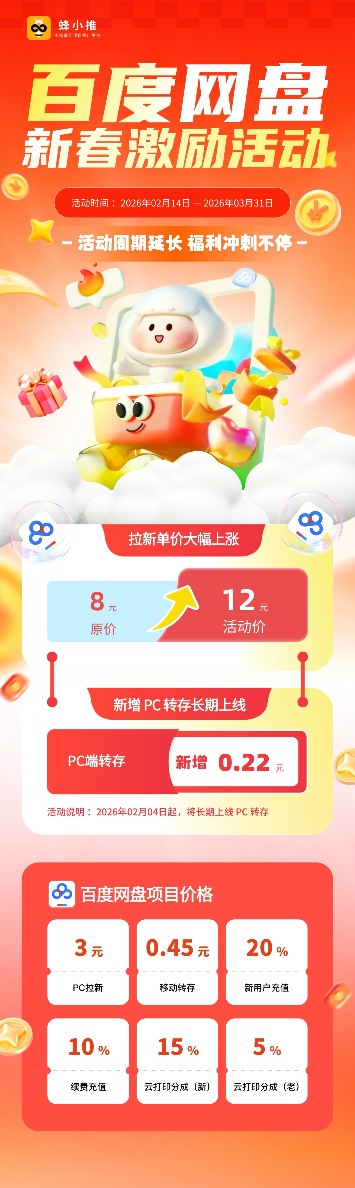 2. 转存单价:2月4日起开启长期PC转存,0.22元/个;常规移动转存0.45元/个