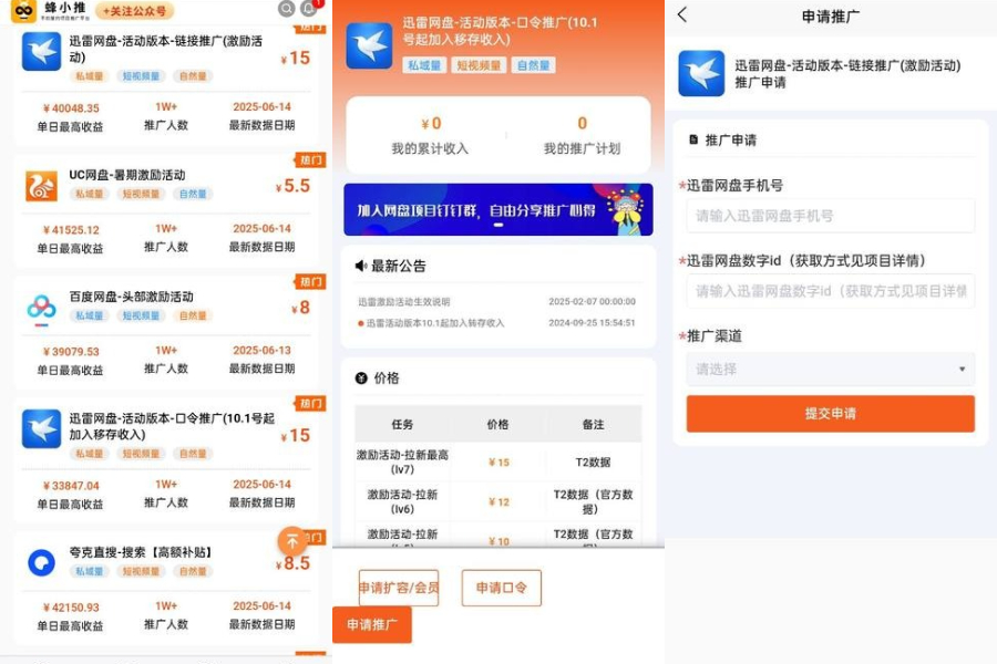 先去官方授权平台(蜂小推)获取推广资格,了解最新的拉新规则 —— 比如现在拉新的具体要求是什么,是需要新用户注册并登录,还是要完成首次存储文件?。了解清楚规则后,就知道自己要 “做什么”“怎么做才算有效”,不用白费功夫。