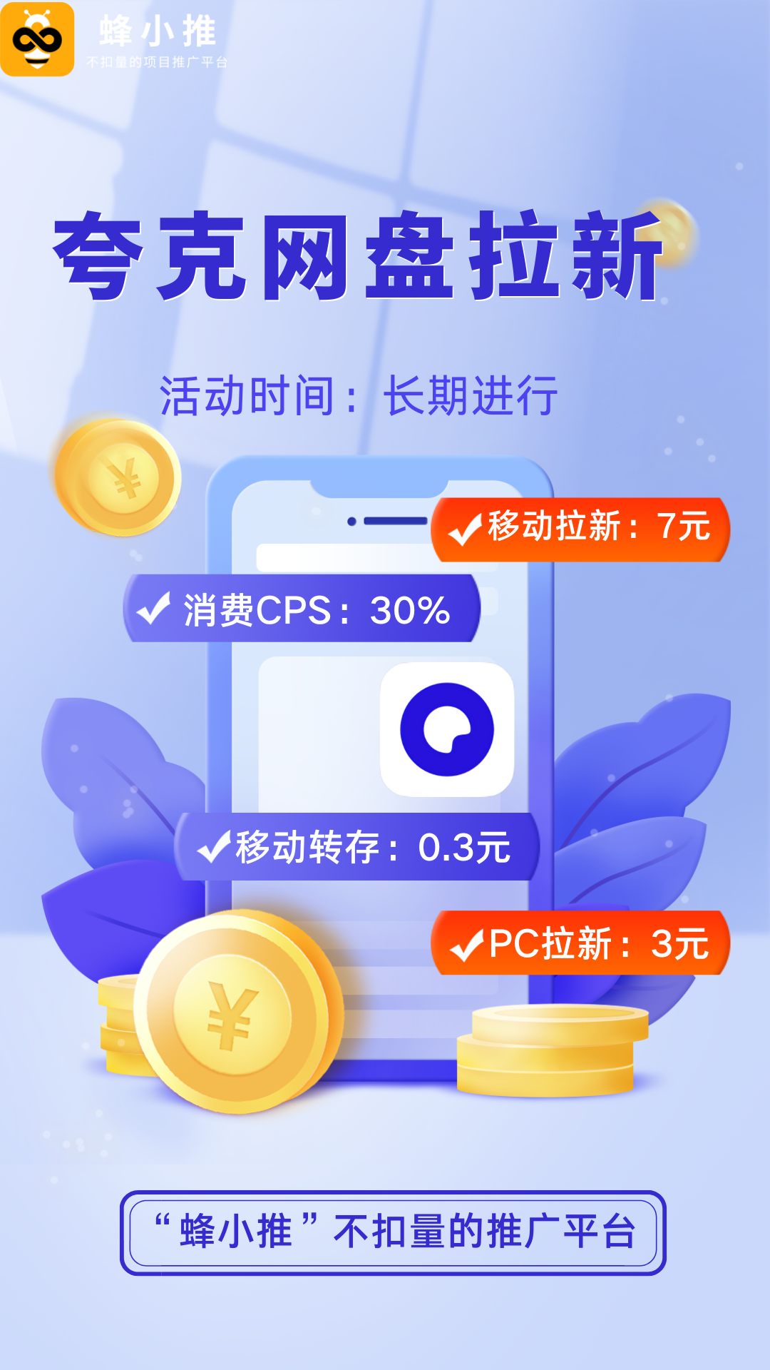 从精准定位筛选核心用户,到内容与场景构建使用习惯,再到多元激励实现长效增长,夸克网盘的拉新逻辑本质是 “价值共生”。选择官方授权渠道蜂小推启动推广,用对方法就能在激烈竞争中突围,让每一次推广都成为有效积累。