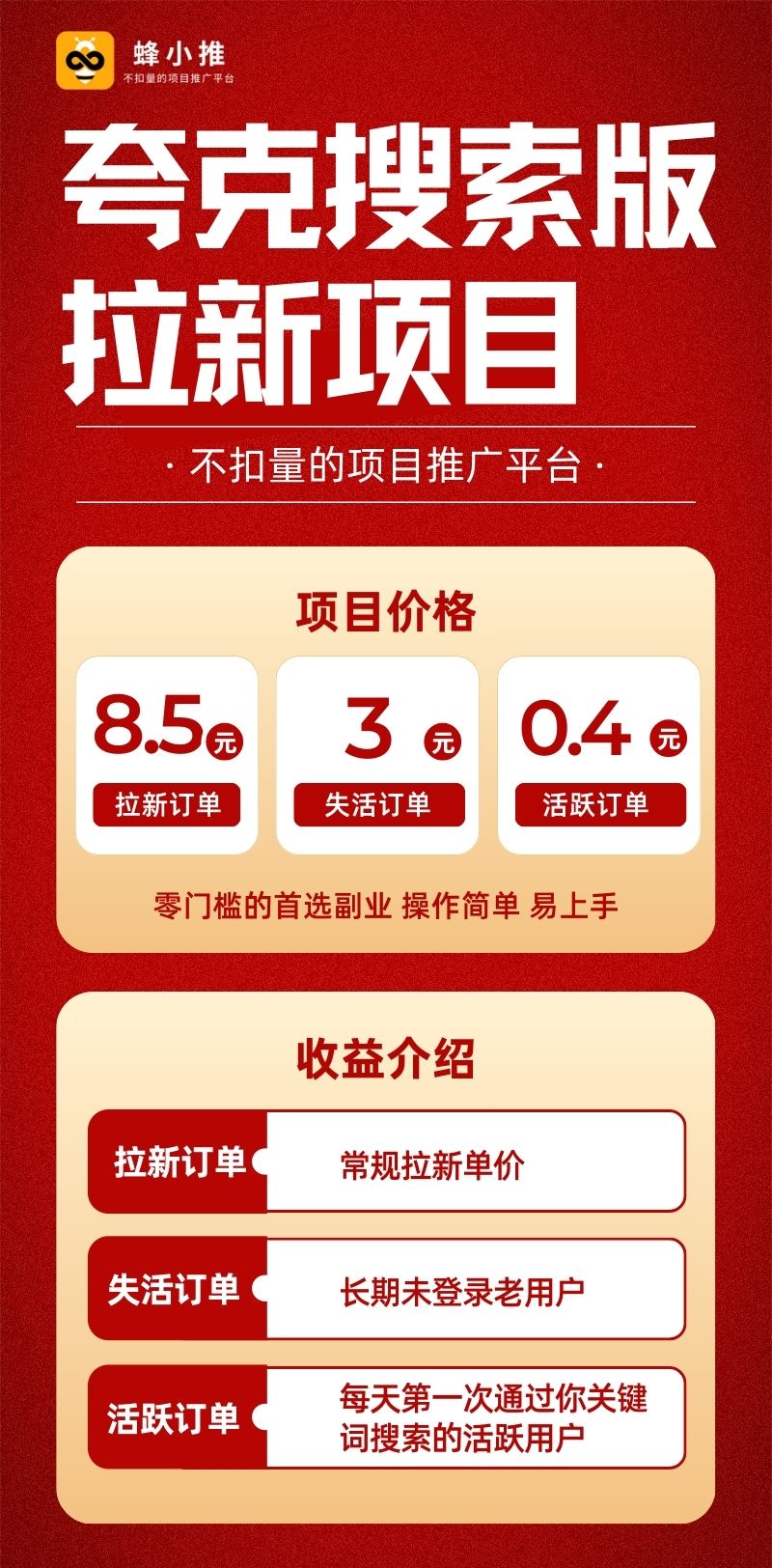 现在网上副业项目满天飞,十个有九个是坑。但夸克搜索版推广有几个明显的优势: