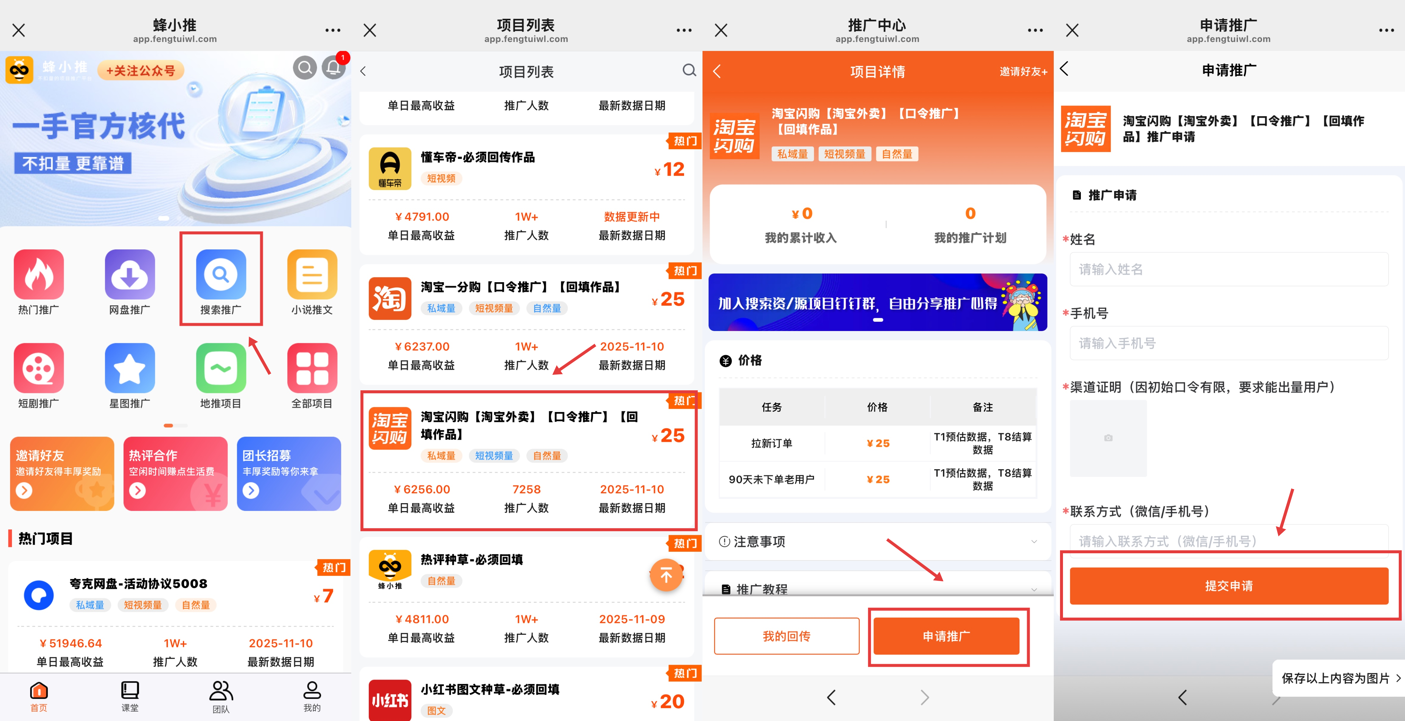 成为淘宝闪购推广达人的第一步,是找到正规的授权渠道【蜂小推】。具体操作非常简单:下载【蜂小推】APP后,搜索“淘宝闪购”,填写申请信息,申请成为达人即可。平台上有海量的项目资源,淘宝闪购推广项目是其中的热门选择。通过平台对接,你可以获得官方授权,开始自己的推广之旅。而且淘宝闪购推广的时间相当灵活。你完全可以利用碎片时间进行操作,无论是下班后、周末,还是其他空闲时段。这种灵活性使得它成为主业的完美补充,不会影响正常工作和生活。
